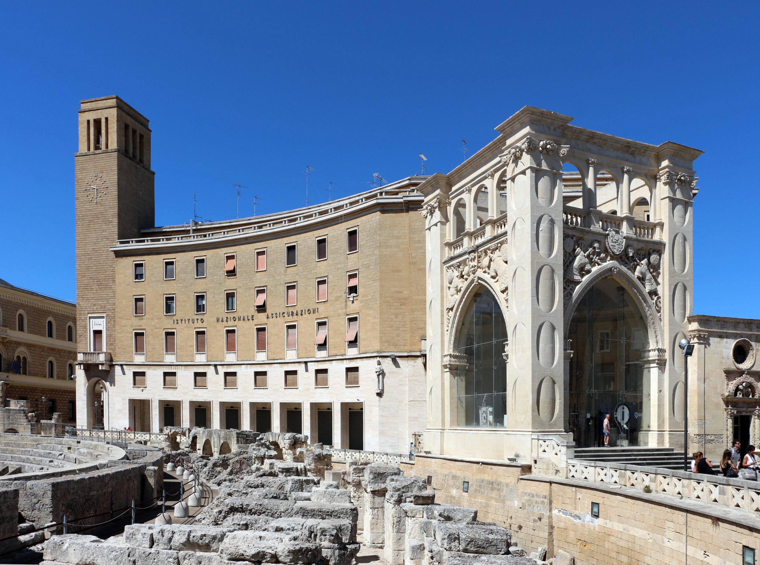 Piazza Sant’Oronzo è la piazza più importante di Lecce, dove convivono tanti stili, testimonianza di diverse epoche storiche che si sono succedute nel corso dei secoli.